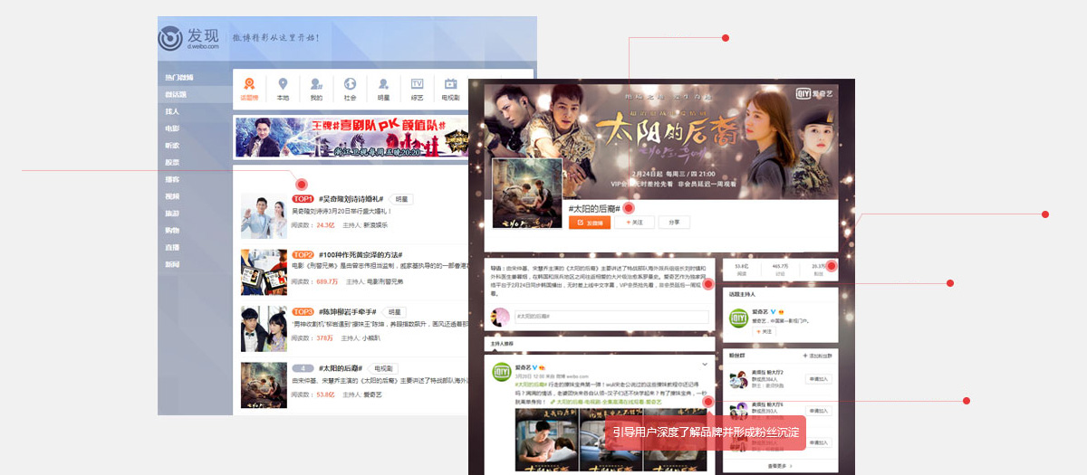 制造微博热点,吸引微博用户注意力,在特定时段内直接呈现在微博“热门话题榜”单上。